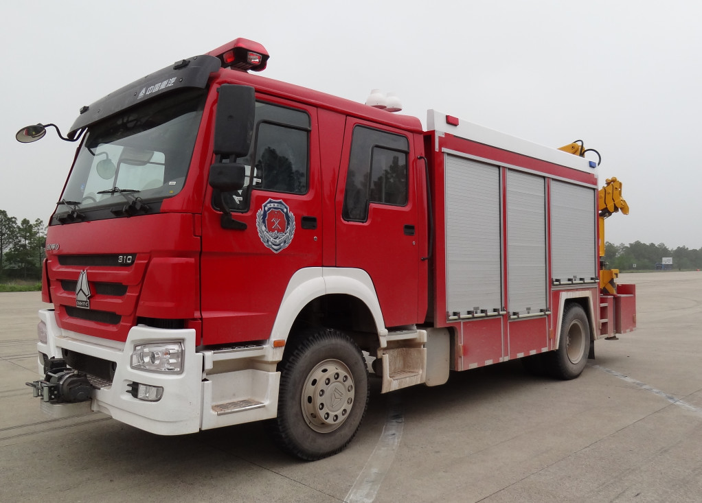 SINOTRUK HOWO 4 * 2 شاحنة إطفاء الإنقاذ في حالات الطوارئ الثقيلة مع رافعة 5 طن